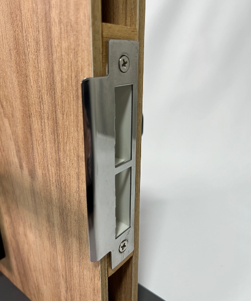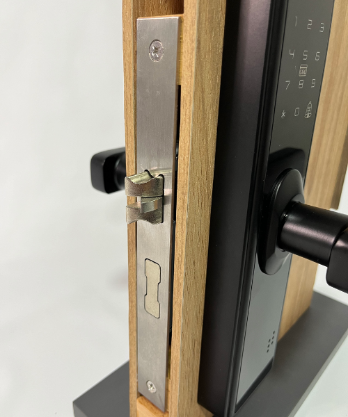 Estrutura moderna em ABS e alumínio, ideal para porta sem maçaneta.