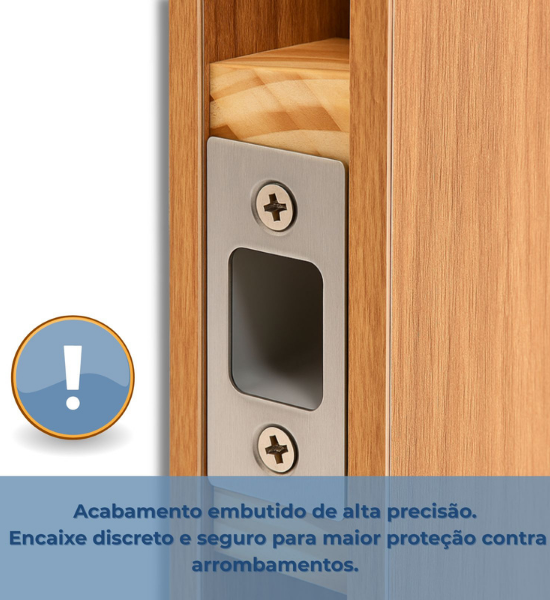 Design clean e moderno, mantendo funcionalidade completa sem maçaneta externa.