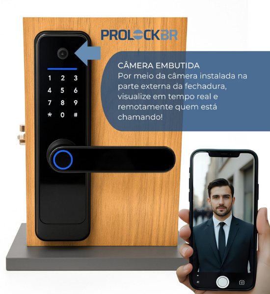 A Fechadura Digital Wi‑Fi Modelo M2 com Câmera PROLOCKBR® é uma solução avançada para segurança residencial e comercial. Com conectividade Wi‑Fi, permite o controle remoto via aplicativo, oferecendo múltiplos métodos de acesso, incluindo biometria, senha, cartão RFID e chave física. A presença de uma câmera integrada proporciona monitoramento visual, aumentando a segurança e a conveniência do usuário.
