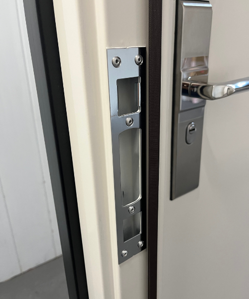 Porta de Segurança em chapa de aço quimicamente tratada e com acabamento em pintura eletrostática na cor branca