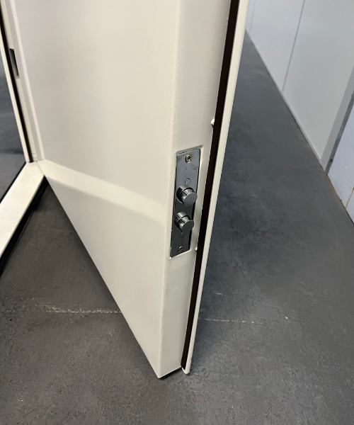 Porta de Segurança em chapa de aço quimicamente tratada e com acabamento em pintura eletrostática na cor branca
